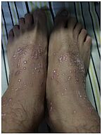 患者: 好的。照片3是目前我弟弟腿上的,他是近期才发现起疱,但有的过几天会自己下去,留下一个小点儿,目前这个情况用采取措施吗?后期会越来越严重吗?