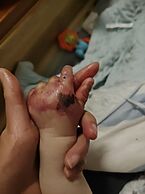 患者家属: 好的,徐医生。现在他的这个小手,我目前是没有给他包扎的,我怕一直包着的话,他会手部功能不灵活。他现在手上的这个水疱,有出现的话我就会直接给挑破,一直是这样处理。不知道是包起来好一点,还是这样敞开好一点?