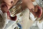 徐子刚医生: 这个问题确实挺麻烦的,你只能找眼科做角膜的大夫看一下,你告诉他孩子是这个病。还有孩子这个脚的并趾,如果要分趾的话,还得找外科进行分趾,而且分趾之后还得用敷料隔开不让它再长到一起。因为你孩子现在还比较小,这症状是比较重的。
