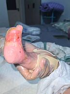 患者家属: 对对。我们一般在她睡着的时候换药,有一次在换药中途她突然醒了,然后她情绪特别激动,我发现她严重的这只脚长好的位置,里边会充血。