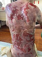 徐子刚医生: 那还是没有完全长好,其实那个皮肤是羊皮纸一样非常薄的,所以在用力的时候,有血管渗出的时候,就会出现这个问题。我们说的好,可能只是没有那个大的水疱,不是糜烂面了,但那不是正常皮肤。