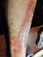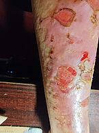 患者家属: 然后膝盖部位的水疱戳破之后,我在怀疑是不是我没有把疱液排干净,后续就像死皮似的,皮特别硬,变硬了之后,我就不敢用针扎,扎起来就感觉像是戳到肉一样。