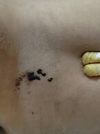 林志淼医生: 戳疱的目的是排除疱液,在没有液体的情况下是不需要用针头去戳破的,硬皮说明它下面已经开始要慢慢修复了。