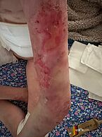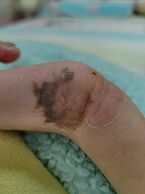 患者家属: 孩子的手我们也包敷料,但好像效果也不是特别好,敷料打开之后还是可能会起疱。