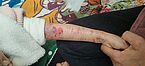 罗晓燕医生: 首先我们要明白手指为什么会挛缩,挛缩还是轻的,你看一些重度的RDEB或者JEB的孩子,他整个都会融合了,就是手指头、脚趾头都没了,全部形成一团。产生的原因是反复的水疱和瘢痕。我们要预防它的挛缩或减轻它的挛缩,就要针对挛缩产生的原因,也就是要减少水疱和瘢痕的发生。