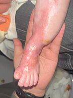 罗晓燕医生: 所有的家长们,这个EB除了是一个特殊的基因遗传病以外,导致的这个伤口、创面恢复跟我们外科的这些皮肤护理一样的,就是除了基因治疗是特别的以外,这些伤口护理都是一样的。所以创面都已经很潮湿和有感染了,你肯定要给它暴露出来,我们就应该赶快给它虹吸啊湿敷啊,让渗液赶快干燥掉。可以用一用双氧水或者是聚维酮碘,稀释以后给它局部湿敷,湿敷了以后让创面不要那么湿润,干燥了以后局部再去给它抹百多邦或生长因子。